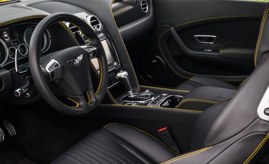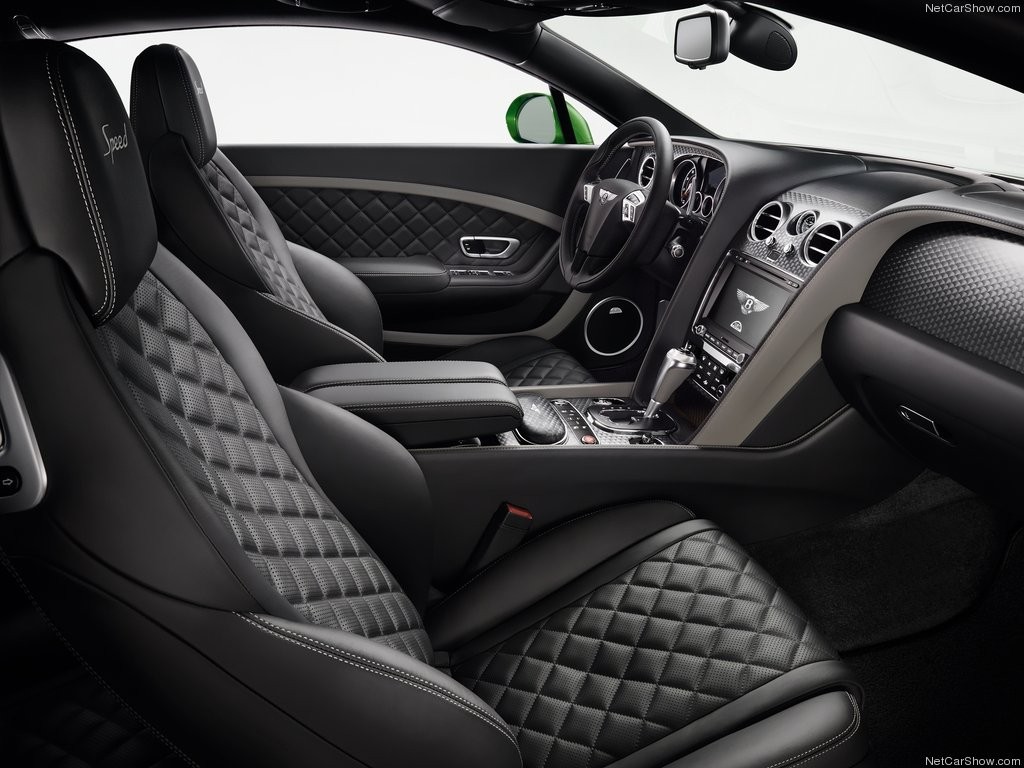 При первом взгляде, обращенном внутрь автомобиля мы видим в салоне все то, за что Bentley славится роскошью и комфортом — в отделке использованы кожа, редкие породы дерева высочайшего качества. На креслах использована запоминающаяся строчка в виде ромбов. Водитель испытывает настоящий простор в выборе функций, которые он может задействовать.