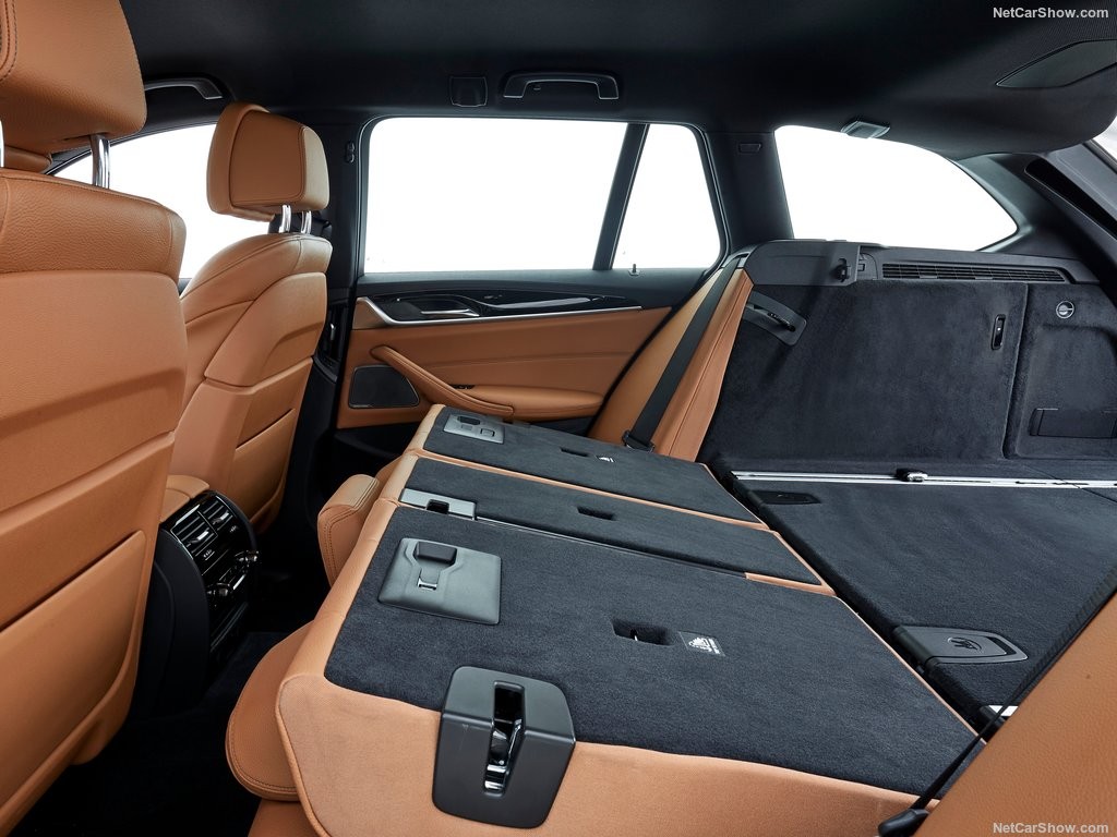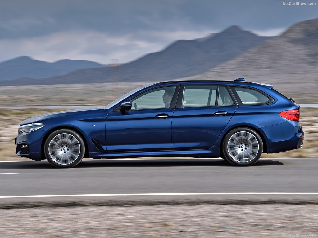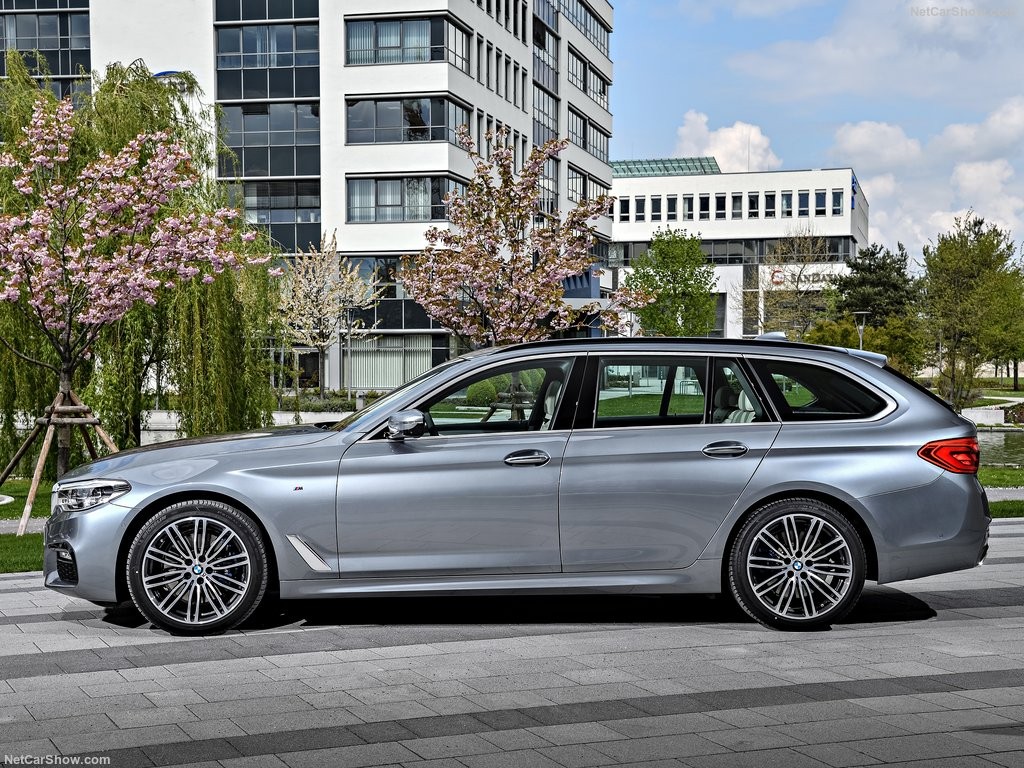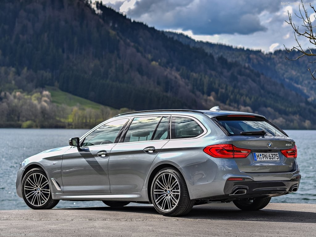Передняя стойка универсала агрессивно завалена назад, а крыша элегантно ниспадает на солидную заднюю часть универсала. Кроме того, новую пятёрку снабдили уже традиционной для баварских автомобилей изогнутой задней стойкой Hofmeister, которая стильно подчёркивает конец линии идущей под окнами.