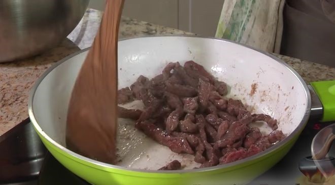 - Шаг 2. Растопить часть сливочного масла и небольшими порциями обжарить мясо до мягкости. Готовое мясо переложить в тарелку. Добавлять масло при жарке каждой порции.