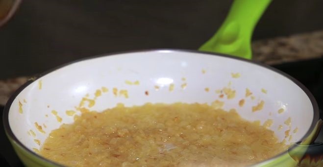 - Шаг 3. После приготовления мяса, необходимо мелко шинковать лук и обжарить его до золотистого цвета в той же сковороде на оставшемся сливочном масле. Чтобы вкус будущего блюда получился наиболее ярким можно деглазировать сковороду с помощью коньяка (деглазирование – это процесс снятия «остатков» от жарки мяса, которые используются для приготовления соусов).