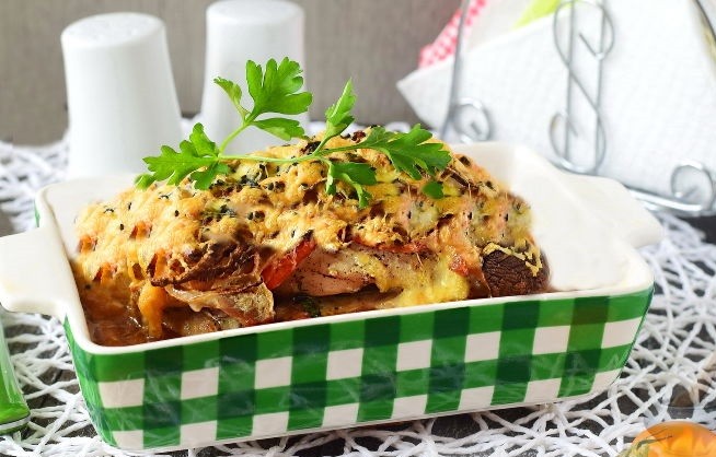 Мясная «слойка» с овощами на Новый год 2019