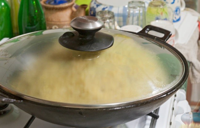 - Убавить огонь на минимум, закрыть крышкой и готовить 15 минут, после чего выключить, но не открывать крышку еще 30 минут, чтобы плов настоялся и впитал в себя все необходимые ароматы.