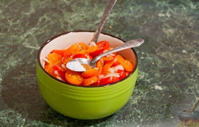 — Помидоры, немного посолить.
