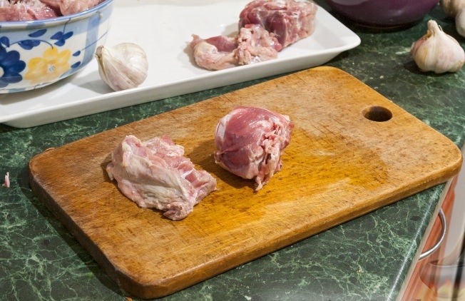 - Срезать мякоть с костей. Если кость очень крупная, ее стоит разрубить на более мелкие.