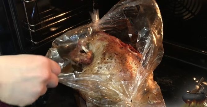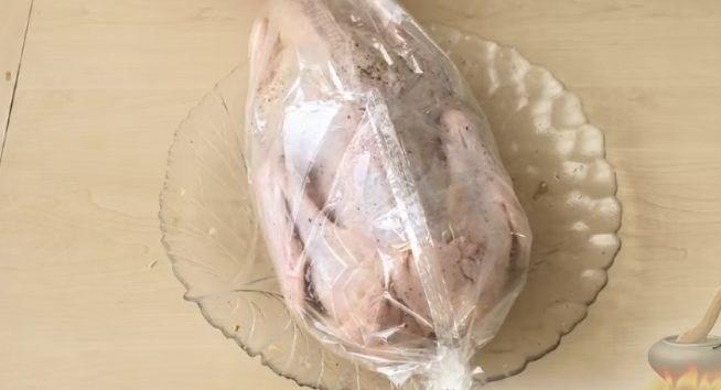 - Поместить утку в рукав для запекания и убрать в холодильник на несколько часов – чем дольше, тем лучше.