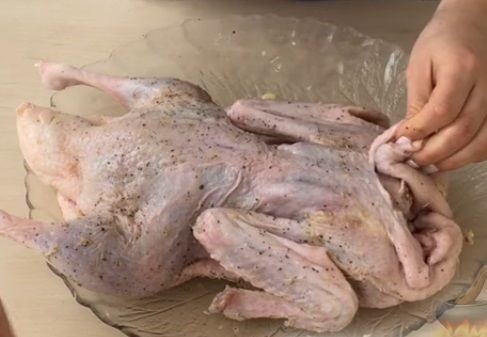 - Утку промыть, высушить бумажными полотенцами и натереть солью со всех сторон.