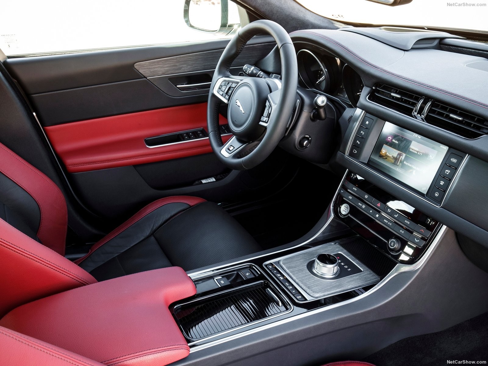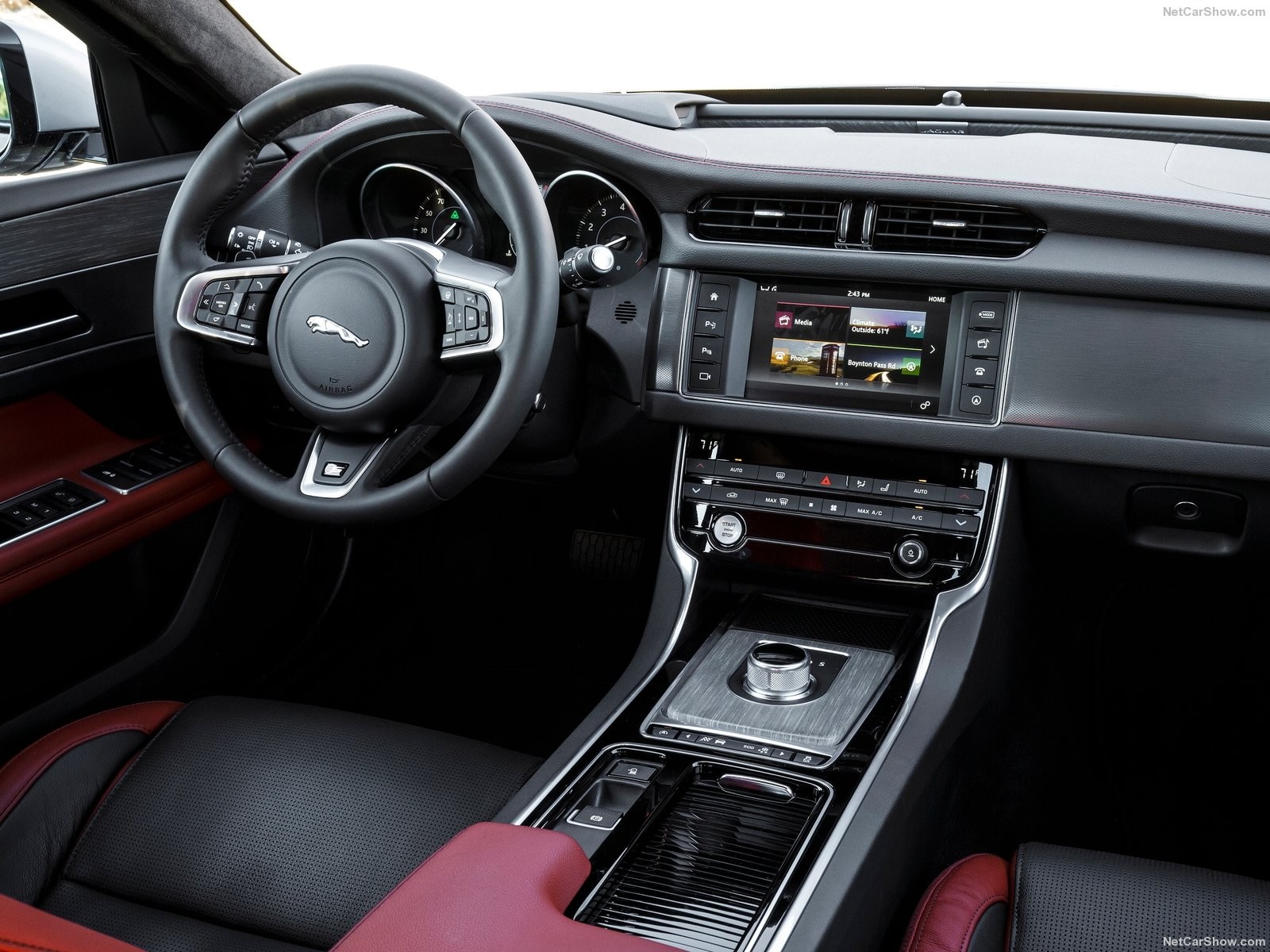 Интерьер нового Jaguar выполнен в стиле, который кратко можно охарактеризовать, как современная спортивная классика. Такому впечатлению способствует стремительная линия передней панели, электронные табло приборов, выполненные в агрессивном, спортивном стиле, рулевое колесо, напоминающее очертаниями штурвал современного скоростного самолета.