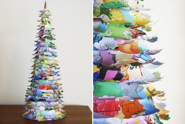 Этот вариант ёлочки можно считать самым простым. За один вечер вы можете сделать несколько таких красавиц и расставить их в разных комнатах. Не смотря на простоту в изготовлении – выглядят они очень оригинально.