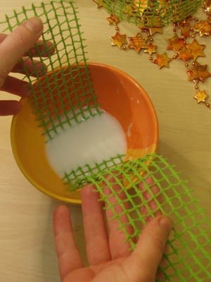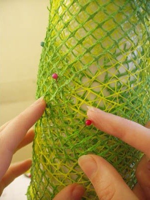 - Когда сетка высохнет нужно аккуратно снять все булавочки. И сверху клеим ещё один слой сетки так, как мы делали это в первый раз. Снова закрепляем булавками и ждём полного высыхания.