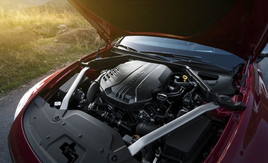 Когда речь заходит о силовых агрегатах, новенькому Kia Stinger есть что показать. Модель 2018 года оснащается довольно сильным мотором, как для седана, но после заявлений о том, что автомобиль будет конкурировать с легендарными немецкими седанами это нисколько не удивляет