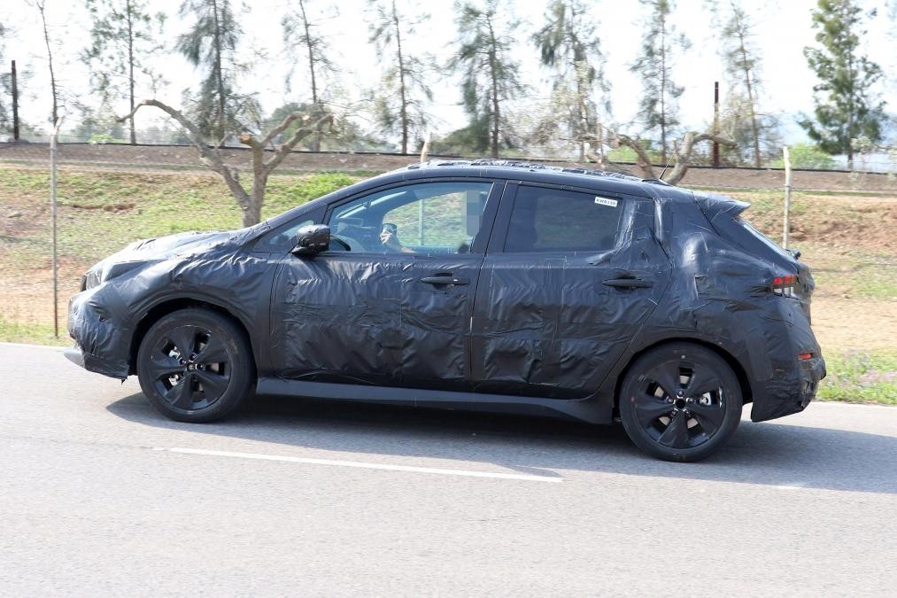 С боку Nissan Leaf отличается высокими, но короткими пропорциями и затемнёнными центральными стойками, именно поэтому со стороны кажется, что крыша «плавает». Корма оснащена утонченными габаритными фонарями клиновидной модификации и тонким задним диффузором, что создает эффект своего рода «прищура» авто.