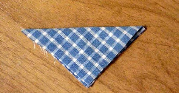 - Белая заготовка выворачивается наизнанку, отрезанная часть собирается в пучок и сшивается нитками.