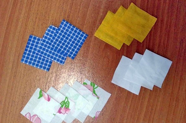 - лоскуты разного цвета и размера;