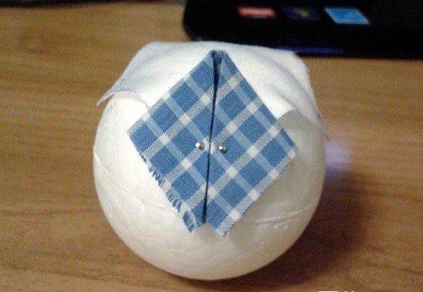 - Лоскутки подготавливаются к поклейке. Их нарезают самыми разными формами, главное, чтобы размер лоскута был довольно маленьким как для шара. Форма может быть самой разной – квадратной, треугольной.
