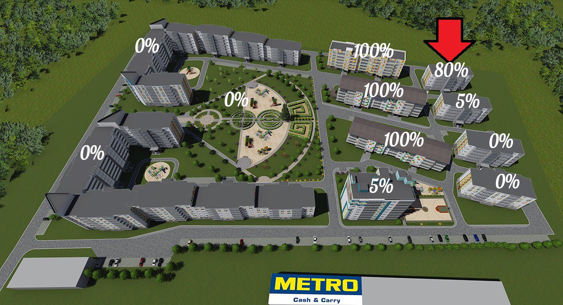Придомовая территория хорошо обустроена, так рядом с домом присутствуют детские и спортивные площадки, пешеходные дорожки и паркинг на 102 места, находящийся под самим строением. Недалеко от новостройки есть школы, больницы, большой стадион и учебные учреждения. Поскольку дом по ул. Перекальского строится в несколько очередей, сдача дома в эксплуатацию запланирована застройщиком на 3 квартал 2018-го.
