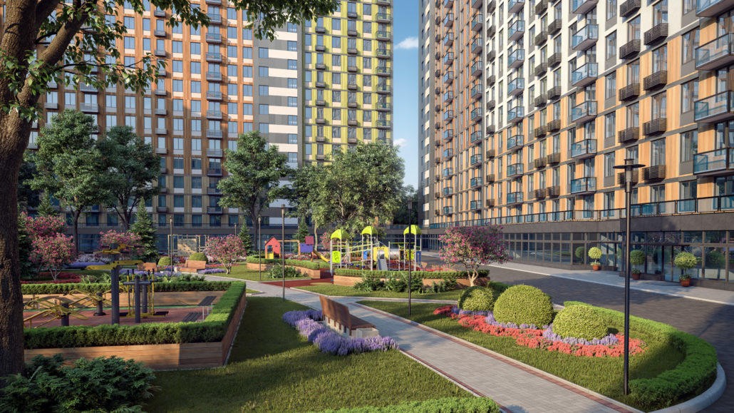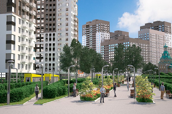 Вокруг домов будет располагаться благоустроенные площадки с интересным ландшафтным дизайном. Качественное и продуманное социальное пространство обеспечит высокий комфорт и удобство жителям «Сердца столицы».