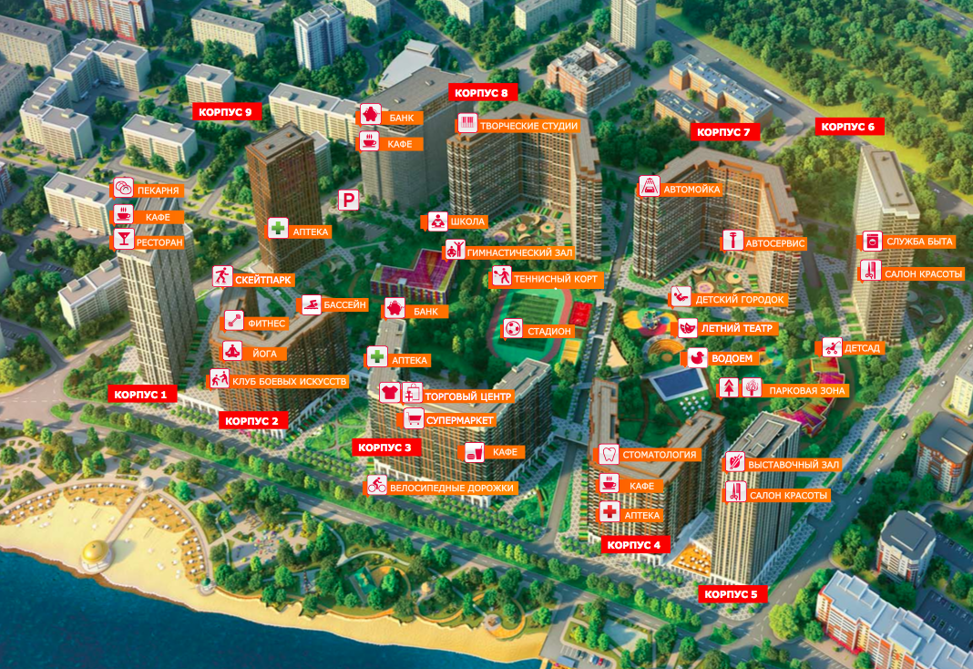 Кроме этого, на территории ЖК запланировано строительство: