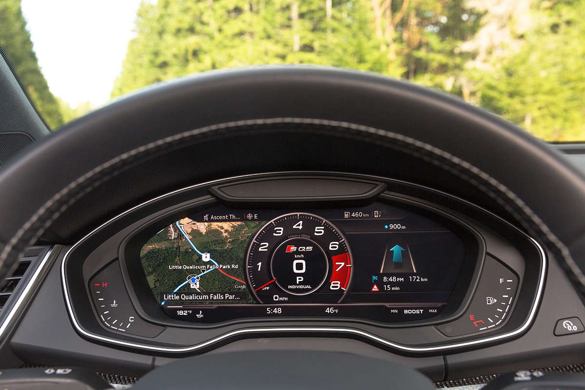 Место водителя оснащено панелью приборов с цифровым экраном, производитель дал ей название «виртуальный кокпит». Кроме того в помощь водителю: сенсорный дисплей системы MMI. Отдельного внимания достоин самый большой проектор в истории автомобильного проектирования.