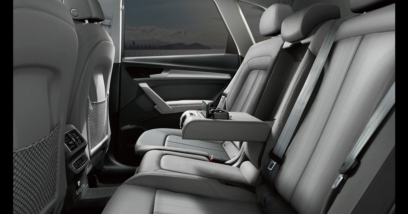Весь интерьер Audi Q8 2018 носит характер прогрессивного минимализма. Основной акцент сделан на взаимодействие высоких технологий и сенсорного управления. Примером служит отсутствие всем знакомых дверных ручек, вместо них на дверях располагаются чувствительные датчики, одно прикосновение к которым открывает дверь. Только аварийная система, ручной тормоз и стеклоподъемники оснащены привычными кнопками.