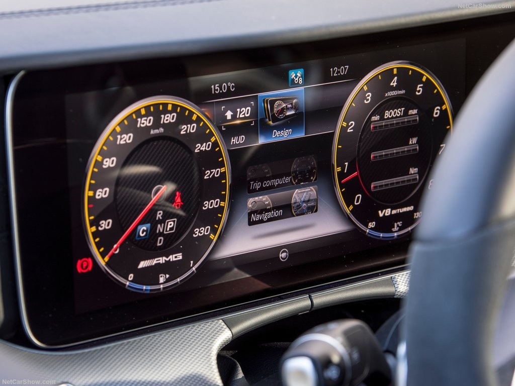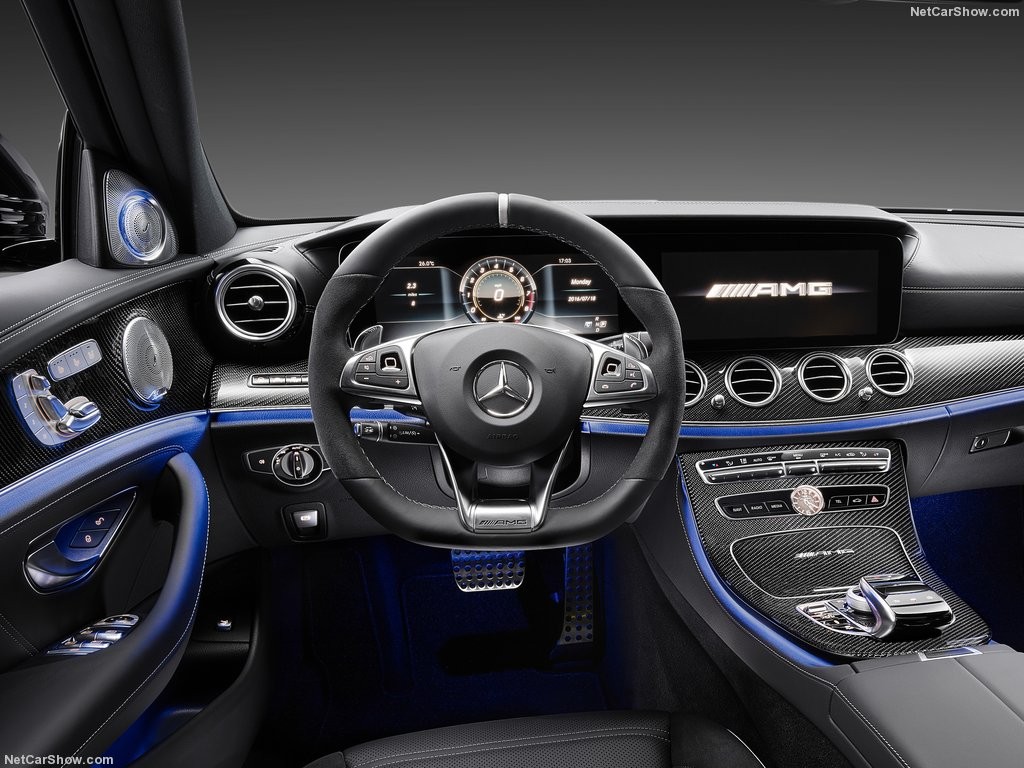 Главные изменения в интерьере АМГ Е63 произошли в программном обеспечении, плюс поменялось оформление приборного щитка, где центральное место теперь занимает тахометр