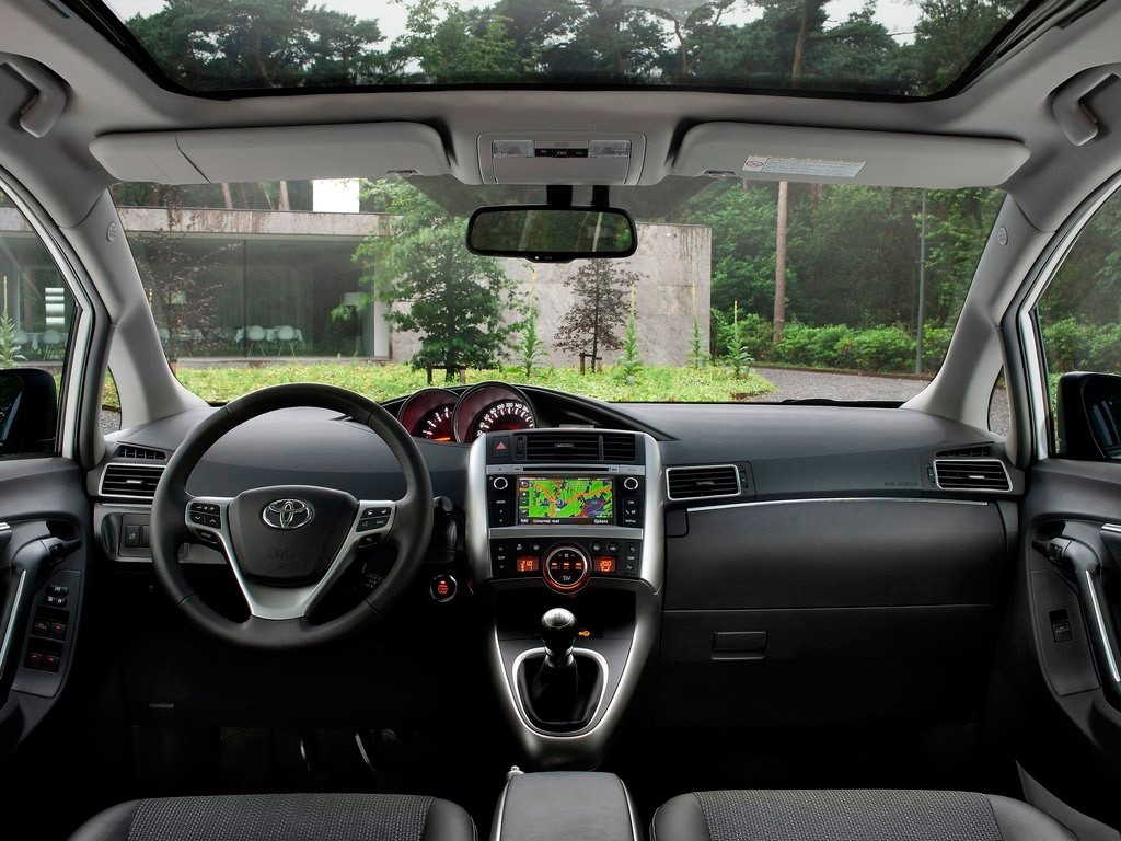 По центру панели расположен экран мультимедиа-системы, над ней расположены измерители — интересное отличие новой Toyota Verso.