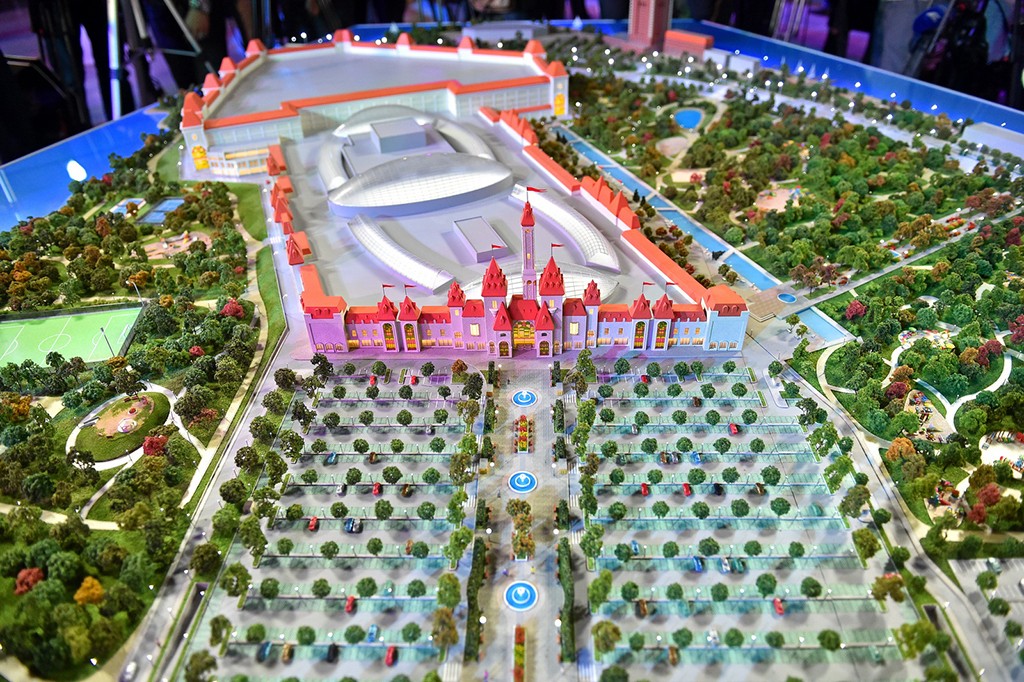 В этой гигантской сказочной стране расположатся тематические аттракционы (всего их предполагается десять), несколько залов для просмотра кинолент и мультфильмов, игровые и спортивные площадки, ледовая арена, огромный концертный зал, детская яхтшкола.