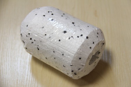 - Пенопластовая форма в виде овала (можно вырезать форму из толстого пенопласта, если же такого под рукой не оказалось, то склеить между собой несколько тонких листов, а затем вырезать из них овальную фигуру);