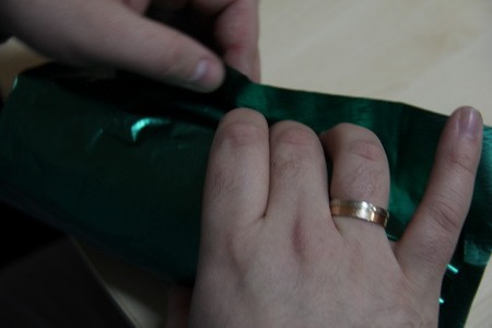 - зелёная упаковка для подарка;