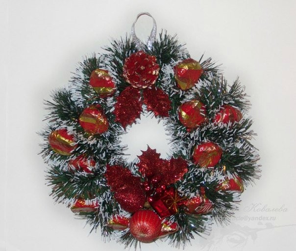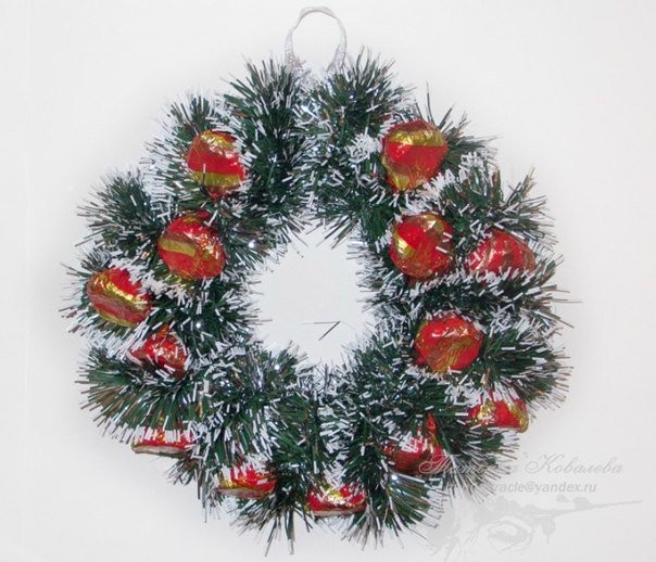 Новогодний венок из конфет