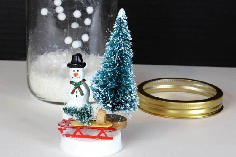 - Края банки обильно смазываем клеем и плотно закрываем крышкой, на которую приклеили фигурку.