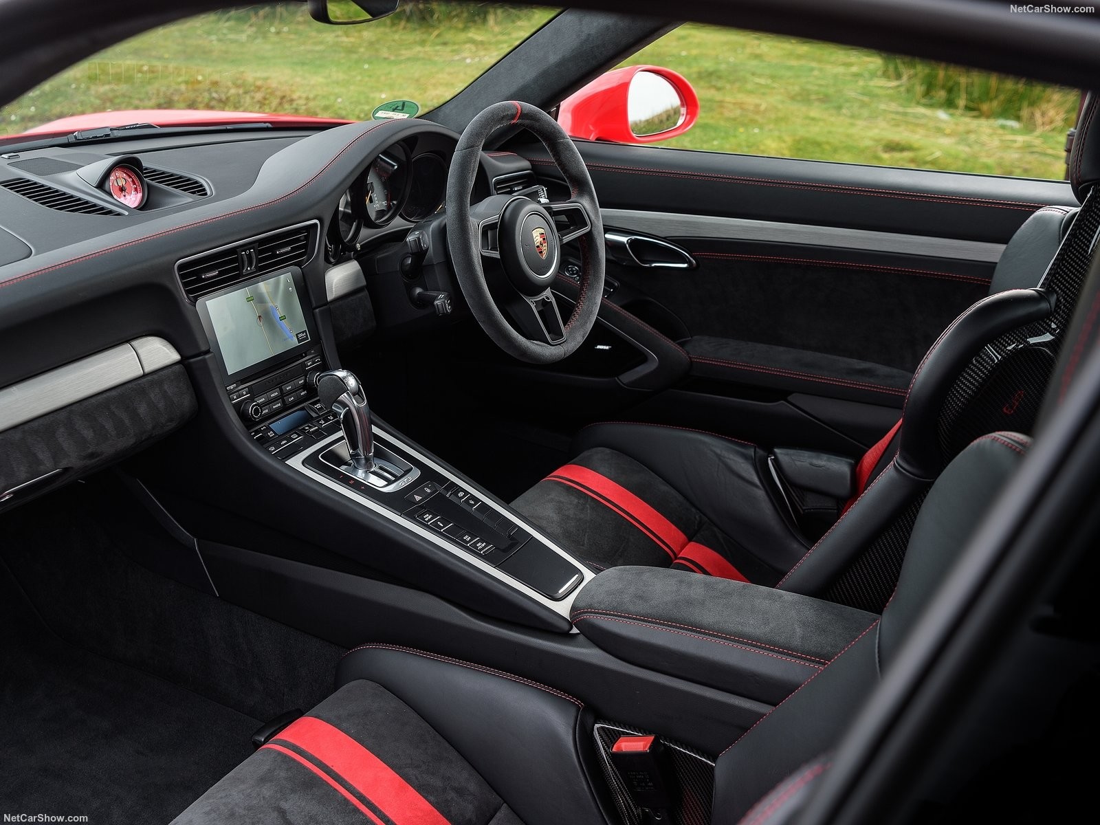 Porsche 911 GT3 2018 оснащен огромным количеством приятных дополнений. Начнем с основных – тормоза из углеродо-керамического материала и спортивные сиденья оригинальной расцветки. Этот комплект обойдется клиенту в 14 410$ — немалая сумма, только не для покупателей GT.