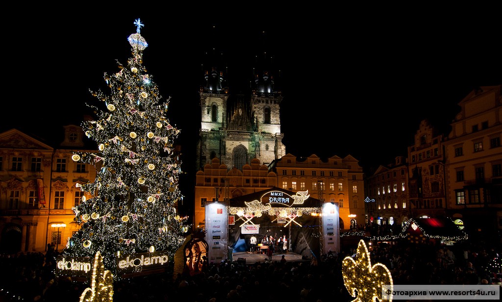 Традиционно жители города празднуют Новый год на главной площади города – Староместской, где всегда устанавливается центральная елка города, шампанское в новогоднюю ночь льет рекой, а удар часов воспринимают как начало новой жизни. Есть даже поверье, что если загадать желание на Карловом мосту в момент, когда куранты пробьют двенадцать, то оно обязательно сбудется.
