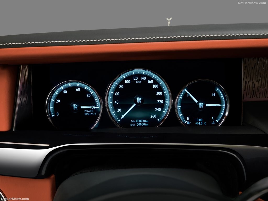 Панель приборов обновлённого Phantom будет полностью цифровой. Возможно, приверженцы традиционных технологий будут немного расстроены, но с другой стороны, компания Rolls-Royce не может оставаться на обочине прогресса. Аналоговыми на борту новинки останутся лишь часы, да и то в качестве дополнительной опции.
