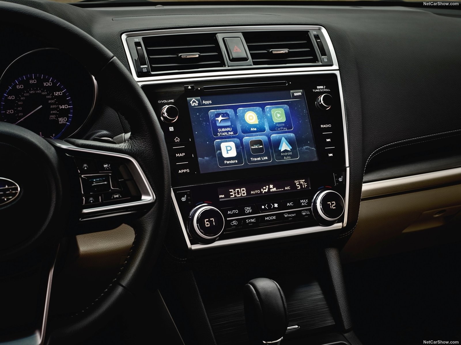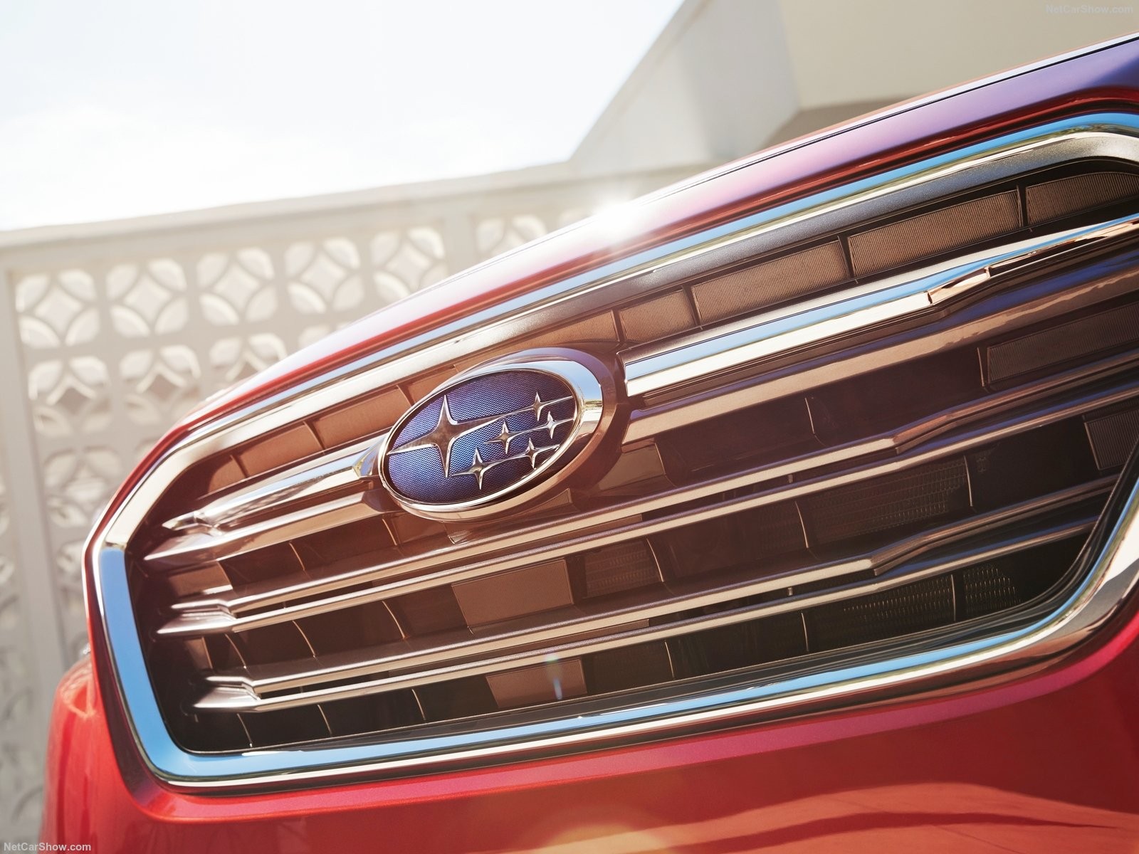 - Теперь на передней решетки радиатора появилась мощная хромированная перемычка с крупным логотипом Subaru;