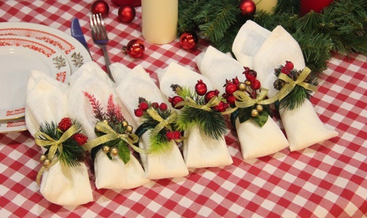 - кольца для салфеток с новогодним декором;