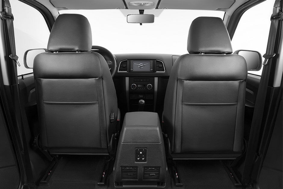 Не забыли и про задних пассажиров. Для них предусмотрен подлокотник с боксом и подстаканниками и подогрев сидений. Сиденья будут тканевые, но будет вариант отделки их перфорированной кожей. Так же можно будет установить микролифт водительского кресла, датчики света и дождя, система ГЛОНАСС с навигацией.