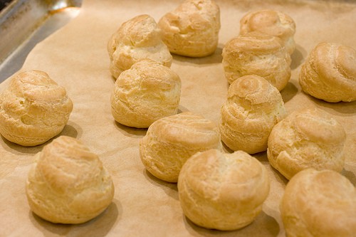 В первую очередь необходимо сформировать и испечь профитроли. Для того, чтобы тесто получилось нужной консистенции, продукты для его приготовления должны иметь комнатную температуру.