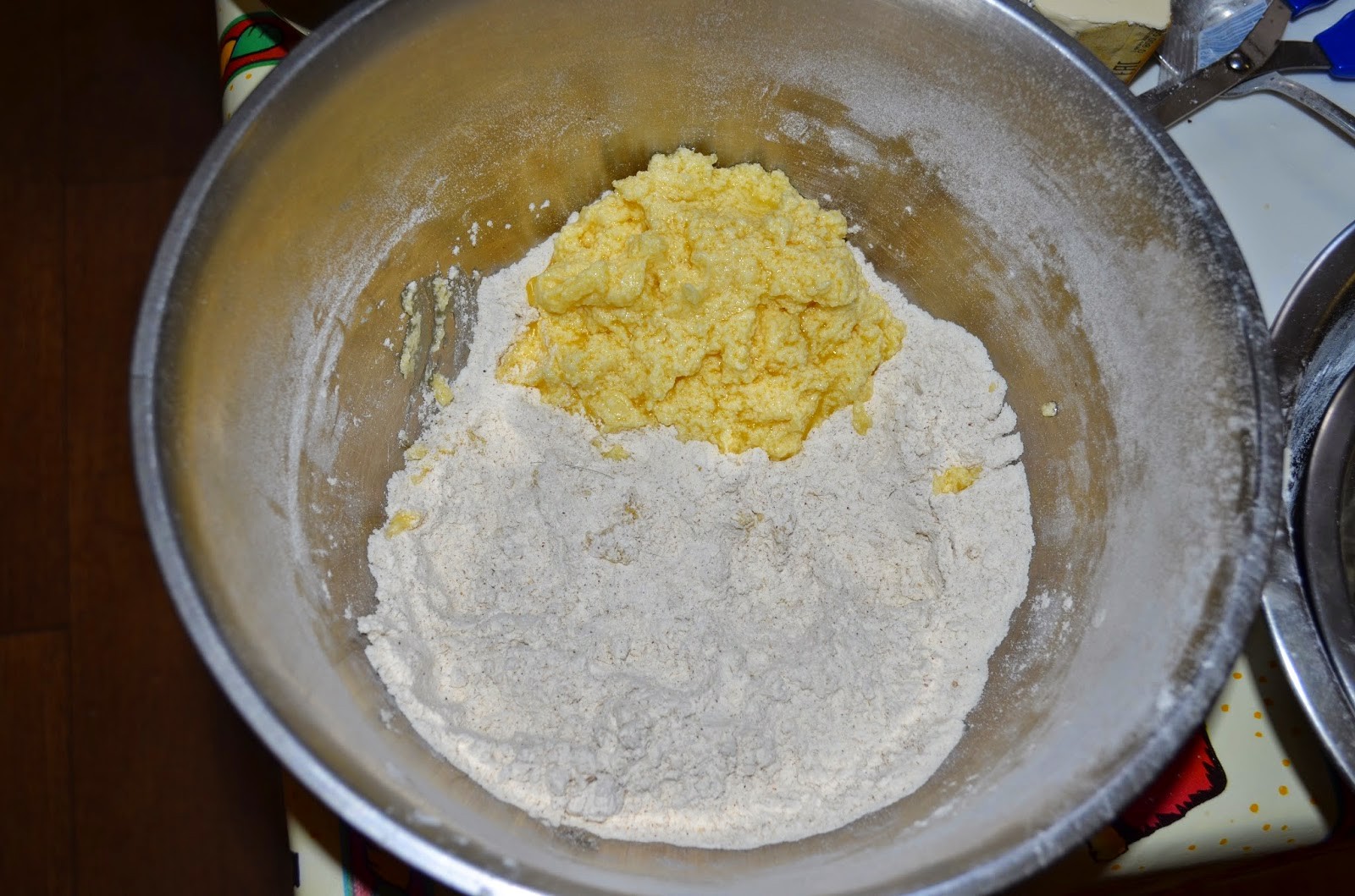 - Когда масса закипит, высыпаем в неё всю муку. Активно вымешивая лопаточкой тесто, до получения однородной массы и значительного увеличения в объёме.