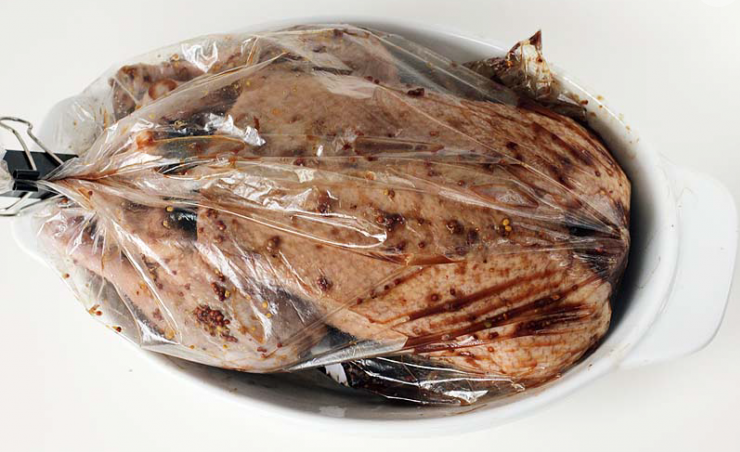 - Утку необходимо запекать 2 часа в духовке, температура в которой разогрета до 200 градусов. Для того, чтобы блюдо прогрелось равномерно, нужно переворачивать тушку через определённое количество времени. Помимо этого, птицу необходимо поливать жиром, который в процессе запекания вытапливается из неё. Благодаря этому, у блюда появиться насыщенный вкус, а шкурка не будет пересушиваться.