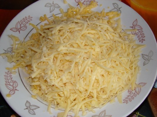 - Натрите на мелкой терке сыр и добавьте его к филе.