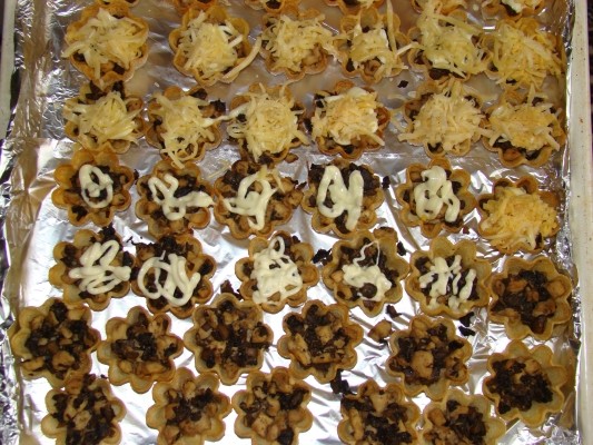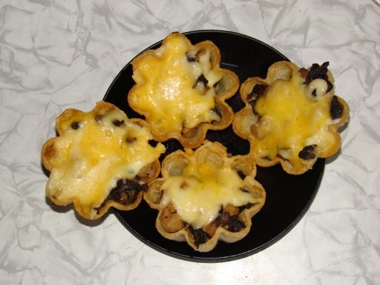 - Отправьте почти готовые тарталетки в духовку на 15-20 минут, чтобы растаял сыр.