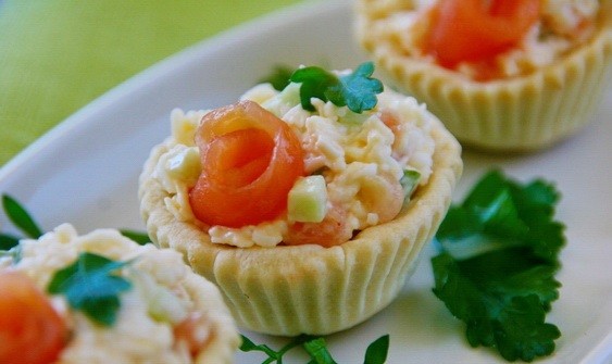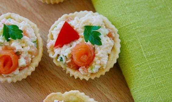 Стоит сказать, что совсем не обязательно делать тарталетки только с красной рыбой или же икрой, ведь каждый может подойти к приготовлению по-своему. В тарталетках будут прекрасно смотреться различные салаты, включая сельдь под шубой, оливье или же салат с крабовыми палочками. Очень часто в тарталетках также подают мясные блюда