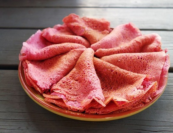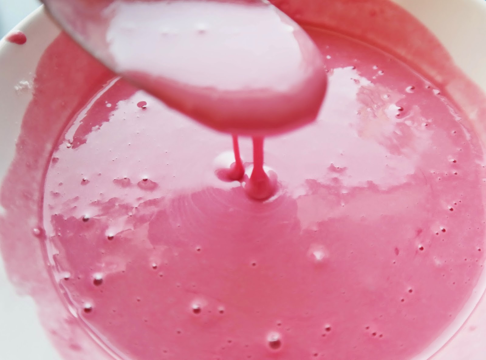 - Добавьте к свекольному пюре яйца и молоко и взбивайте пока не получите однородную массу.