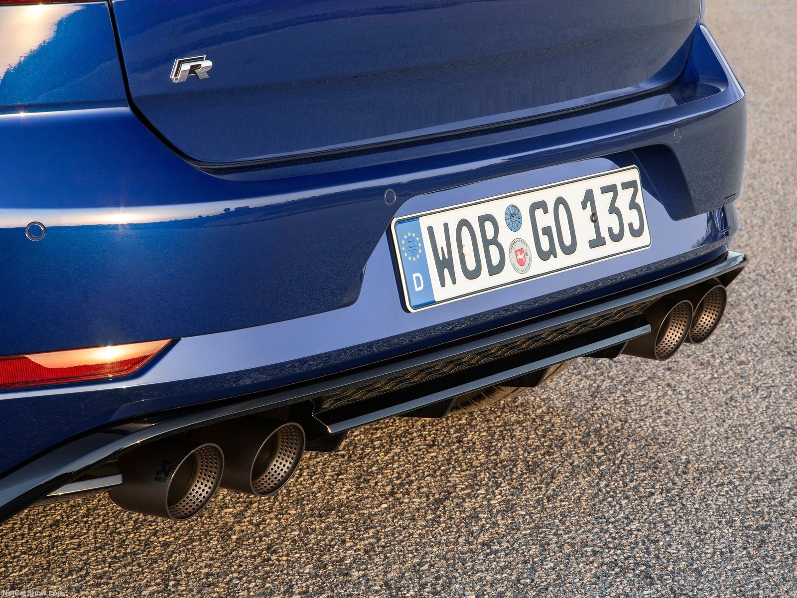Volkswagen Golf R 7 поколения обрел новый дизайн бамперной группы и оптики. Отличительной чертой модели является шильдик в виде буквы “R” на крышке багажника и решетке радиатора